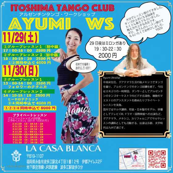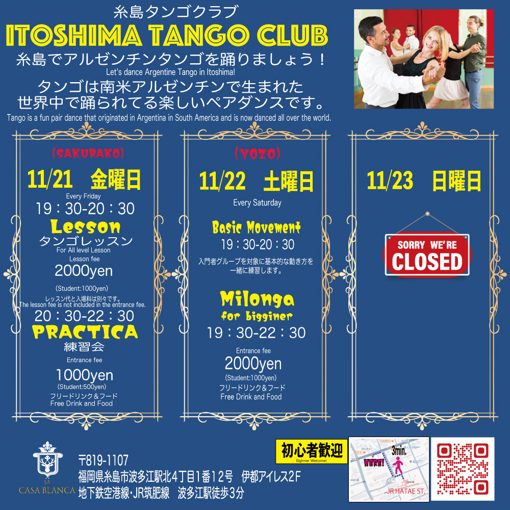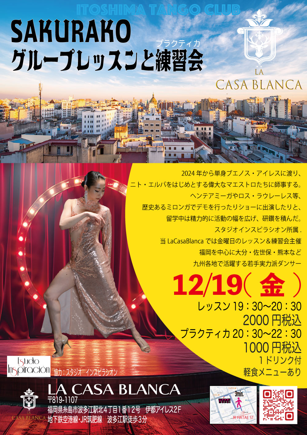 毎月月末に開催される糸島タンゴクラブのミロンガでのDJやデモの発表される方を募集…