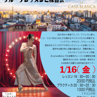 2025 02.20 タンゴ基礎補完練習 yozo News Post Share Hatena Pocket RSS feedly Pin it 重心移動、基礎的な歩き方とか、アブラッソやディソシエーションをテクニックとコネクションを意識して練習しましょう。 Post Share Hatena Pocket RSS feedly Pin it Post navigation 前の記事 次の記事 関連記事 俺のグルメミロンガ 2026/1/18 SAKURAKOのレッスンとプラクティカ 東京&福岡 タンゴ交流会 毎週金曜日はSAKURAKO先生のレッスンと練習会… 糸島タンゴクラブ 12月第3週末の予定 糸島タンゴクラブ 12月第1週末の予定 LAMさんとなかやまたけしさんと仲間達が東京からや… 七面鳥と泡 クリスマスミロンガ 俺のパエリアミロンガ コメント コメント ( 0 ) トラックバック ( 0 ) この記事へのコメントはありません。 この記事へのトラックバックはありません。 返信をキャンセルする。 名前( 必須 ) E-MAIL( 必須 ) - 公開されません - URL