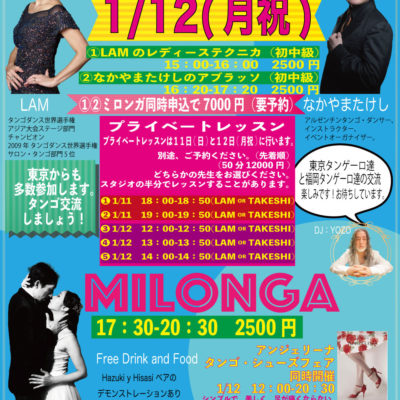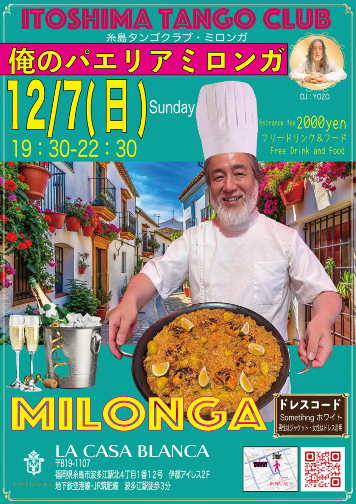 2025 12.02 俺のパエリアミロンガ yozo News Post Share Hatena Pocket RSS feedly Pin it Post Share Hatena Pocket RSS feedly Pin it Post navigation 前の記事 次の記事 関連記事 毎週金曜日はSAKURAKO先生のレッスンと練習会… 糸島タンゴクラブ 12月第3週末の予定 糸島タンゴクラブ 12月第1週末の予定 LAMさんとなかやまたけしさんと仲間達が東京からや… 七面鳥と泡 クリスマスミロンガ 本日 糸島タンゴクラブ 11月第5週末の予定 糸島タンゴクラブ 11月第4週末の予定 11月29日 AYUMI先生のワークショップのお知… コメント コメント ( 0 ) トラックバック ( 0 ) この記事へのコメントはありません。 この記事へのトラックバックはありません。 返信をキャンセルする。 名前( 必須 ) E-MAIL( 必須 ) - 公開されません - URL
