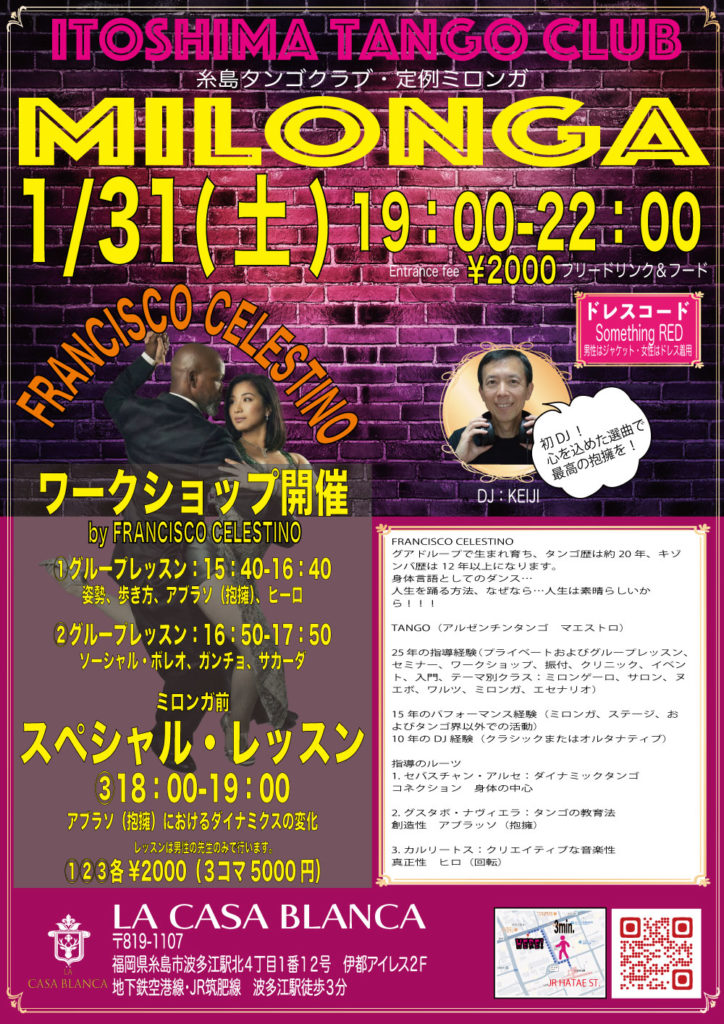 2026 01.23 1/31ミロンガ yozo News Post Share Hatena Pocket RSS feedly Pin it Post Share Hatena Pocket RSS feedly Pin it Post navigation 前の記事 次の記事 関連記事 俺のパエリアミロンガ HOUSE MUSIC PARTY TANGO DJ LABO SAKURAKOのレッスンとプラクティカ スタジオ 一周年記念ミロンガ2DAYS開催 たくちゃん送別ミロンガ DJ TANGO LABO 2/1練習会(プラクティカ) SAKURAKOのレッスンとプラクティカ コメント コメント ( 0 ) トラックバック ( 0 ) この記事へのコメントはありません。 この記事へのトラックバックはありません。 返信をキャンセルする。 名前( 必須 ) E-MAIL( 必須 ) - 公開されません - URL